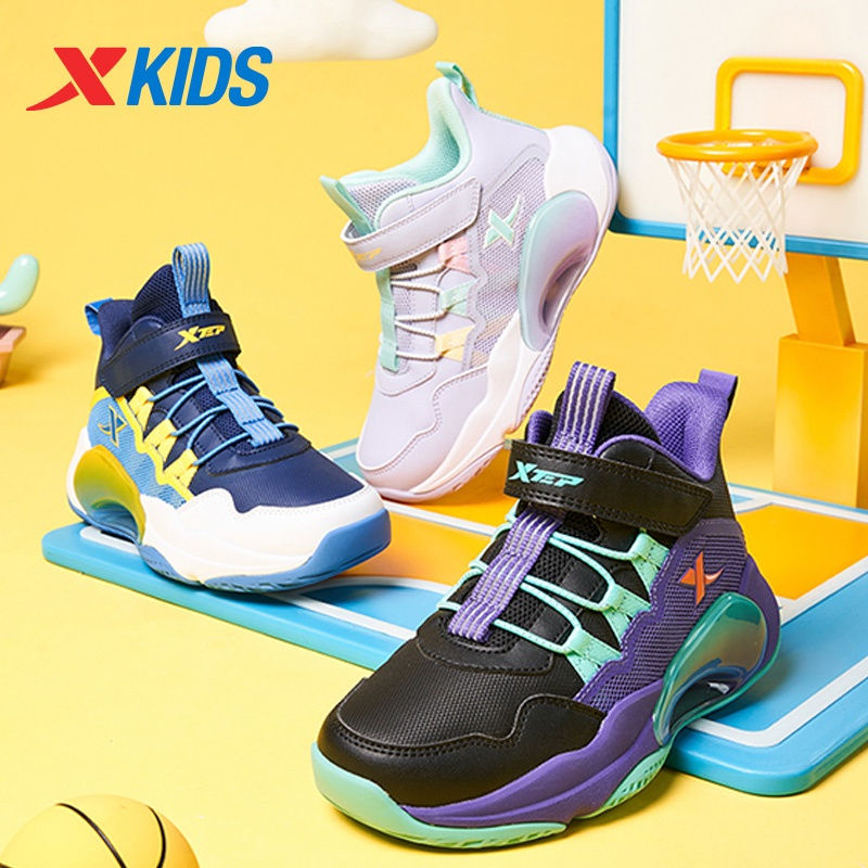 Xtep Kid's Basketball Shoes 2025 Spring Unisex Mesh Breathable Leather High-top